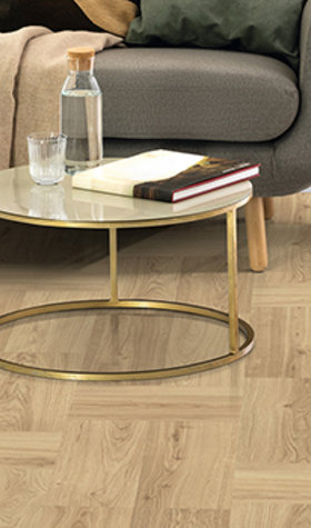 The laminate Natural Clifton Oak has a vibrant wood strip look in a natural honey colour.