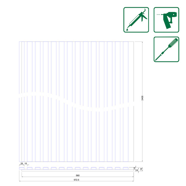 - Distinctive 572.5mm x 2400mm panels