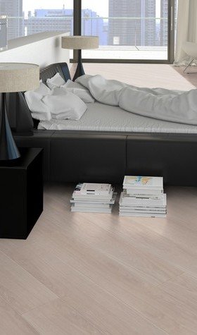 Waveless Oak White is a beautiful bright oak effect laminate flooring by Kronotex. When you first look at this flooring you will notice just how lovely and bright it truly is, and as you indulge into it more, you can start to appreciate all of the detail that has been printed onto this flooring. It has stunning displays of graining, rings and knots which would all be visible on a natural wood flooring. These have all been perfectly coloured with a cream/beige which darkens down the overall look only slightly and is incredibly pleasing on the eyes. The boards all have a 4V groove that makes it way round all 4 edges of the boards, breaking up the patterns and again further replicating the natural oak it is mimicking. This laminate flooring is a great choice for rooms that may lack natural lighting as it is so bright and will liven up the room, equally it is great for rooms that have darker decors as this will create a beautiful contrast and make everything in the room pop!