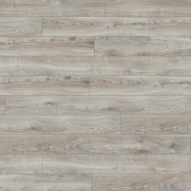 Kronotex have produced a stunning grey laminate flooring and very fittingly named it Highland Oak Silver. This oak effect laminate is part of their Mammut Plus range meaning the boards benefit from having extra-long planks as well as wider than normal boards, giving them a unique edge in larger areas. The boards have beautiful rings along the length of the planks which offer a welcome highlight and add to the sheer amount of variation in these boards, they feature some small dark knots which perfectly replicate the real thing. These boards are a great and neutral way to bring in a rustic feel to the home, due to the very slight warmth present along the boards. The embossing on the boards has been carefully matched to the printed pattern on top, so it not only looks like natural wood but feels like it too!