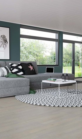 Trendy, slightly edgy, and modern is just few of the many ways to describe Junckers Oyster Grey solid beech flooring. The grey boards are neutral, but have some fun pink/lilac hues that rest in the undertones of this wood, and pop out when you stare at this flooring. If you love decorating, and re-decorating then this floor is a durable choice, as it will be extremely forgiving with decors and colour schemes. The variation boards offer up lots of personality and heaps of focal points, with knotting dotted along the lengths of some boards, some boards featuring tree rings and many more just showing off the natural patterning of solid beech wood.
